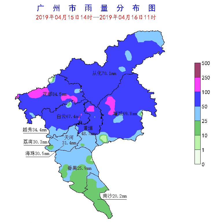 廣州市從化區(qū)、白云區(qū)、天河區(qū)、越秀區(qū)、荔灣區(qū)、增城區(qū)、花都區(qū)、黃埔區(qū)發(fā)布了暴雨黃色預(yù)警。隨著強(qiáng)對(duì)流云團(tuán)的逐漸減弱東移, 16日10時(shí)30分后各區(qū)陸續(xù)解除了各類預(yù)警信號(hào)。