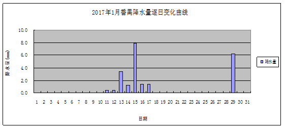 月總降雨量22.3毫米,與累年平均值比偏少5成。其中,上旬沒有錄得降水,中旬與累年平均值比偏多3成多,下旬與累年平均值比偏少5成多,日最大降雨量7.9毫米,出現(xiàn)在15日。