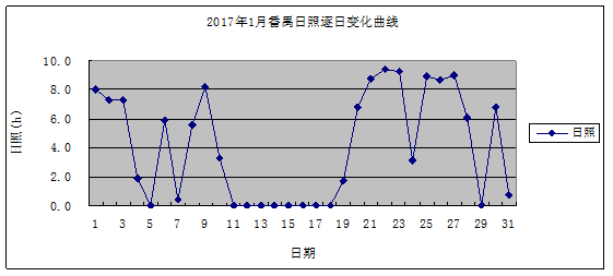 月日照時數(shù)127.2小時,與累年平均值比偏多1成。其中,上旬日照與累年值比偏多1成多,中旬日照與累年值比偏少近8成,下旬日照是累年值的2倍。