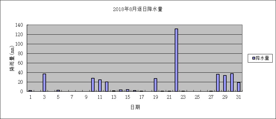 月總降雨量415.9毫米,與累年值比偏多9成。其中,上旬、中旬雨量與累年值比分別偏多1成、近1成,下旬雨量是累年值的3.4倍。日最大降雨量131.7毫米,出現在22日。